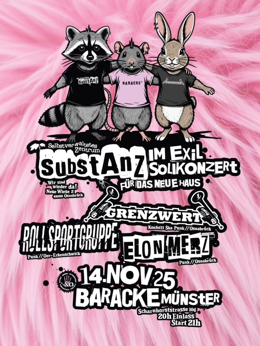 Unsere Freund*innen vom SubstAnZ veranstalten wieder ein Konzert im Exil, dieses Mal gemeinsam mit uns! Euch erwarten: