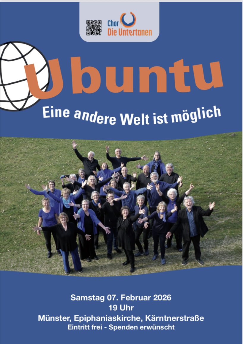 Bild Datum Sa, 7.2.2026 - 19:00 - Sa, 7.2.2026 - 22:00 Ort Epiphanias Kirche, Kärtnerstraße, Münster Tags Frieden Kategorie Konzert / Livemusik