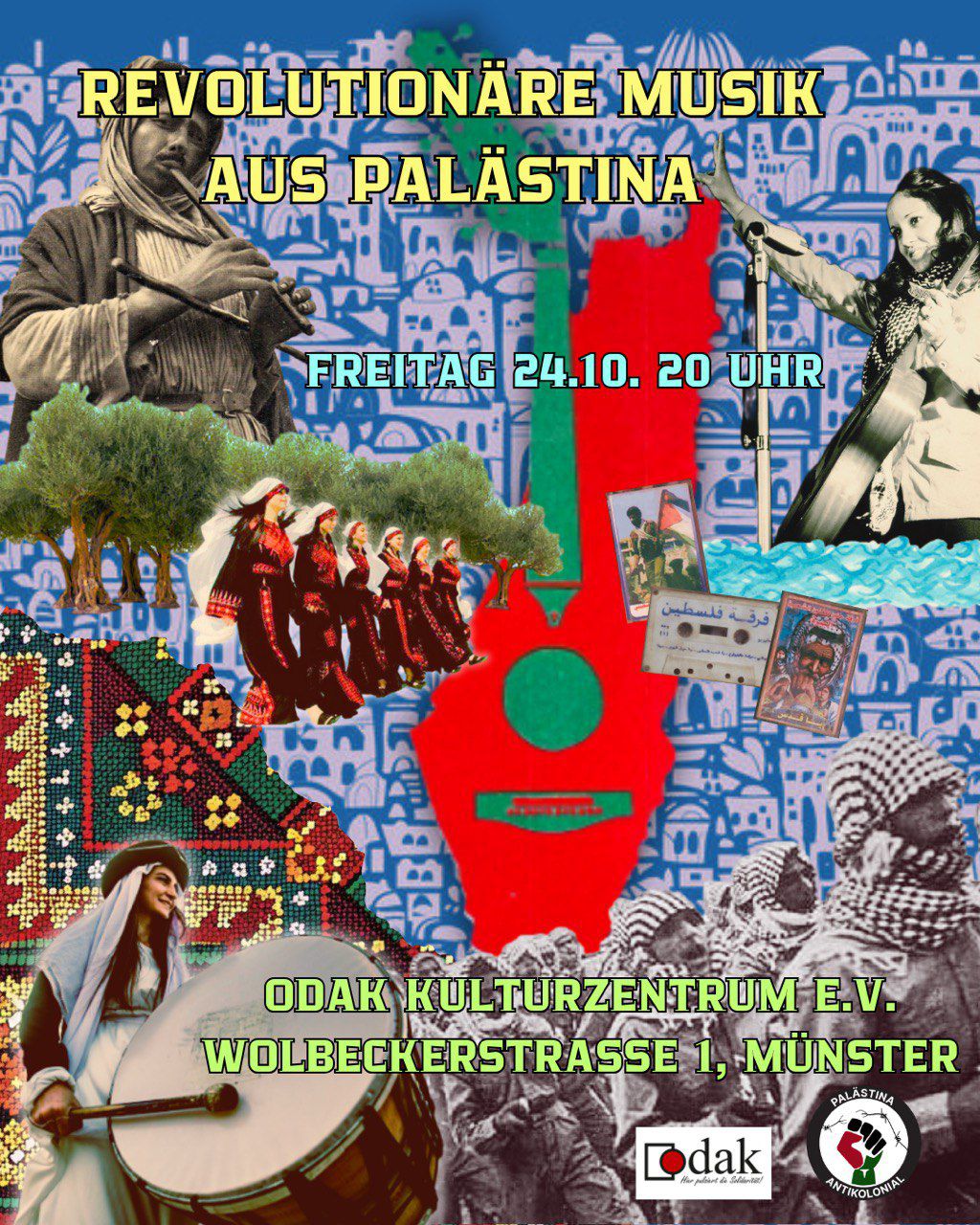 Wir möchten euch alle ganz herzlich zu unserer Veranstaltung am Freitag, den 24.10.2025 ab 20 Uhr „Revolutionäre Musik aus Palästina“ im Rahmen der diesjährigen Kritischen Orientierungswochen einladen.