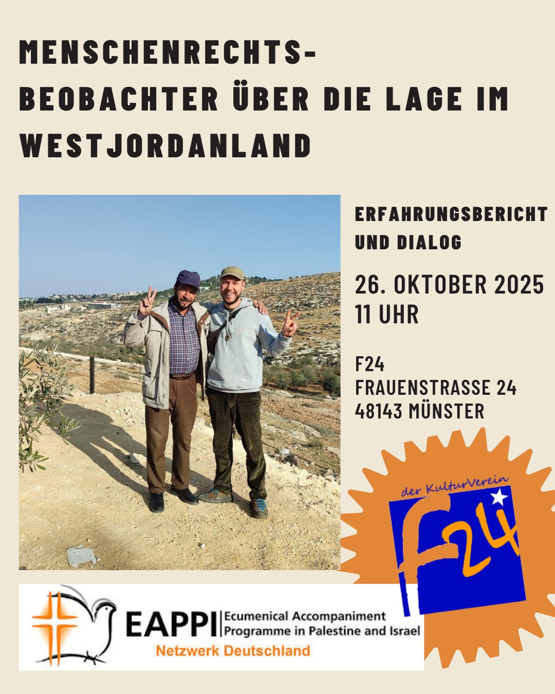 Erfahrungsbericht als Menschenrechtsbeobachter im Westjordanland: Ein Vortrag über die Auswirkungen der Besatzung und de facto Annexion auf die Lebensrealitäten der Palästinenser:innen.