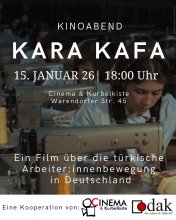 In Kooperation mit Cinema & Kurbelkiste laden wir Euch herzlich zur Vorführung des Films „Kara Kafa“ von Korhan Yurtsever ein. Nach dem Film möchten wir die Gelegenheit nutzen, gemeinsam über den Film ins Gespräch zu kommen.