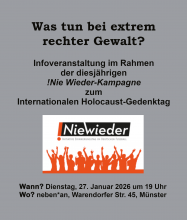Wie in jedem Jahr beteiligt sich das Fanprojekt FANport Münster der Outlaw Kinder- und Jugendhilfe an der Kampagne „!Nie Wieder – Erinnerungstag im Deutschen Fußball“, die rund um den Internationalen Holocaust-Gedenktag am 27. Januar bundesweit stattfindet. An diesem Tag wurde 1945 das Konzentrations- und Vernichtungslager Auschwitz-Birkenau von Soldaten der Roten Armee befreit.