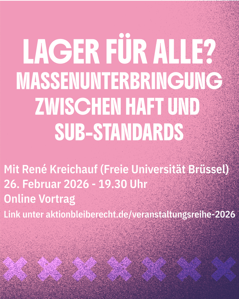 Die Veranstaltung findet online statt. Der Link zur Online-Plattform wird in Kürze hier geteilt: https://www.aktionbleiberecht.de/veranstaltungsreihe-2026/