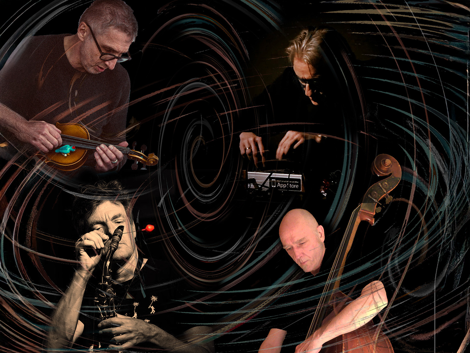 Unterstützt wird er von langjährigen Spielpartnern: dem Wiesbadener Improvisator, Bassisten Ulrich Phillipp, der durch sein markantes Spiel und sein kuratorisches Wirken die hiesige Szene seit Jahrzehnten prägt, dem Kölner Saxophonisten und „sculptor of compressed air“ Georg Wissel, bekannt für seine vielfältigen erweiterten Spieltechniken und außerdem Matthias Kaiser, einem experimentellen Geiger und Improvisator aus Köln, der mit erweiterten Spieltechniken mit Loops und akustischen Präparationen und als Impulsgeber diverser interkultureller Musikprojekte in Erscheinung tritt.